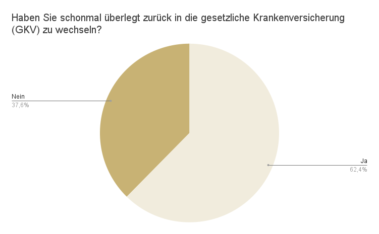 • In der PKV ist der Anteil sogar noch höher: 62 % haben schon einmal über eine Rückkehr in die GKV nachgedacht.