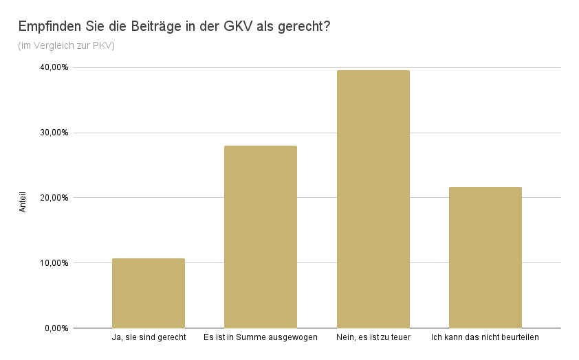 Unser Kommentar: Die GKV wird zwar in der Höhe der Beiträge mehrheitlich als tragbar wahrgenommen, doch bei der Verteilungsgerechtigkeit herrscht deutliche Kritik. Gerade die Frage, wer wie stark belastet wird, sorgt für Unzufriedenheit.