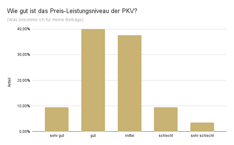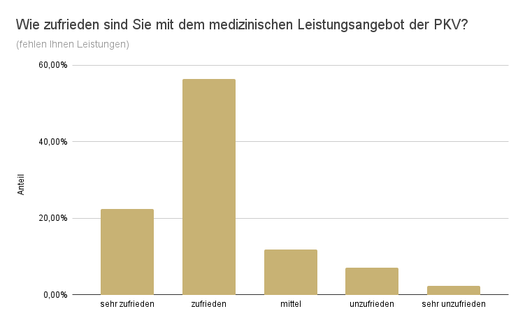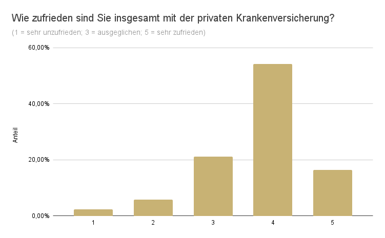 Unser Kommentar: Die Zufriedenheit mit der privaten Krankenversicherung ist deutlich höher als mit der gesetzlichen Krankenversicherung. Insbesondere die medizinischen Leistungen und das Preis-Leistungs-Verhältnis überzeugen viele Versicherte. Ein Grund dafür kann sein, dass sie aus einer Vielzahl von Tarifen wählen können und so eine optimale Passung erhalten. Dennoch zeigt der relativ hohe Anteil neutraler und unzufriedener Stimmen, dass die PKV nicht für alle uneingeschränkt funktioniert – vor allem bei den Kosten herrscht Skepsis.