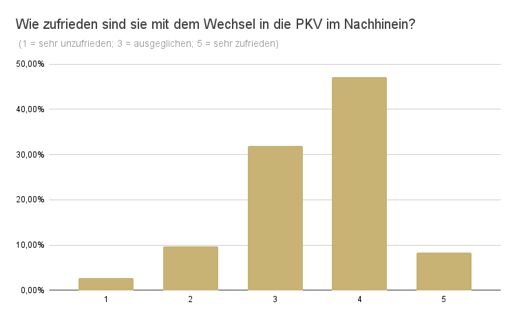 Unser Kommentar: Ein Großteil sieht den Wechsel positiv – wenn ein passgenauer Tarif gefunden ist und eine optimale Aufklärung stattfand, bietet die PKV für die meisten auch mehr Vorteile.